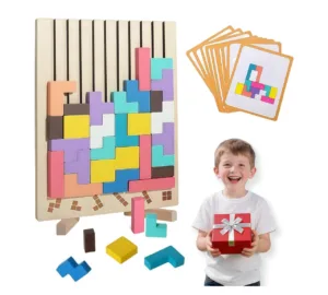פאזל עץ טטריס חכם עם כרטיסי אתגר