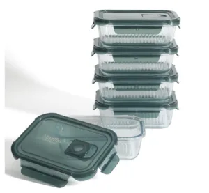 סט של 5 קופסאות זכוכית איכותיות מבורוסיליקט עם מכסים אטומים