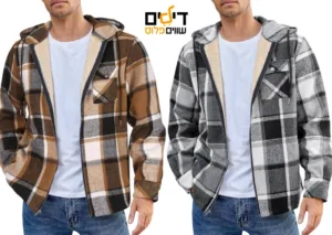 פלנל עבה עם ביטנת פליז רכה ששומרת על חום, סגירת רוכסן מלאה עם קפוצ׳ון, עיצוב משובץ קלאסי שמתאים גם ליציאה וגם ליום יום