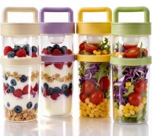 עיצוב דו-קומתי הרוטב מופרד עד רגע האכילה, בלי עלים סמרטוטיים, אטימה מלאה נגד נזילות, כולל כפית נירוסטה מתקפלת מובנית במכסה