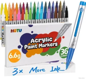 סט של 36 טושי צבע אקריליים עם דיו עשיר במיוחד (פי 3 מרוב הטושים הרגילים), מתאים לנייר, עץ, זכוכית, בד, קרמיקה, פלסטיק, מתכת, אבנים ועוד, צבעים חזקים ואחידים, בטוחים לשימוש וללא ריח חריף