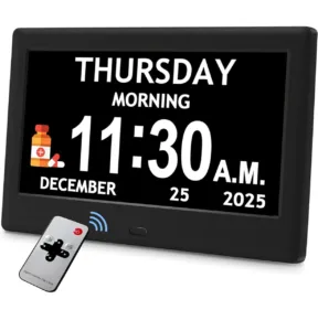 שעון דיגיטלי גדול שמתאים במיוחד לקשישים, עם תאריך, יום ושעה ותצוגת אייקונים גרפית