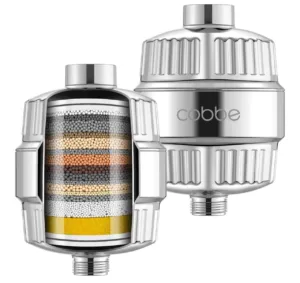 פילטר מקלחת חיצוני חזק של Cobbe שמתחבר לכל ראש מקלחת ומסיר עד 99% כלור, מתכות כבדות ולכלוך מהמים כל פילטר מחזיק 3–4 חודשים / עד 10,000 גלון