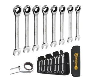 סט מפתחות ראצ’ט מקצועי 8 חלקים מפלדת Cr-V, מנגנון 72 שיניים וגימור כרום מלא לעבודה חלקה וחזקה