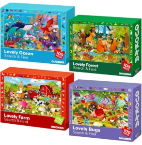 מארז 4 פאזלים נפרדים (100 חלקים כ”א) עם משחק “חפש ומצא”