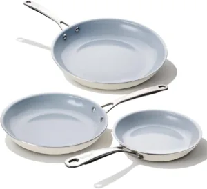 סט מחבתות 3 קרמיות של חברת BECIGAR בצבע לבן שמנת עם ידיות נירוסטה