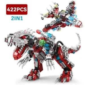 משחק הרכבה 2 ב-1 של דגם דינוזאור Indominus Rex ומטוס עם 422 חלקים