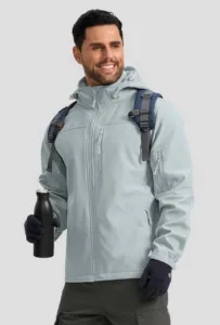 מעיל סופטשל של Pudolla לגברים מרופד פליז, עמיד לרוח וגשם, עם כובע מתנתק וכיסים מרובים
