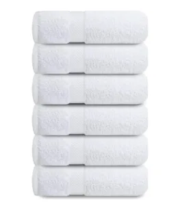 רוצה להרגיש כמו במלון גם בבית? סט 6 מגבות ידיים Infinitee Xclusives בגוון לבן קלאסי עשויות 100% כותנה בצפיפות 600 GSM מעניקות מגע רך, ספיגה גבוהה ומראה נקי ואלגנטי לחדר הרחצה.