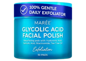 פדים לניקוי וחידוש עור הפנים של MAREE, עם חומצה גליקולית, חומצה סליצילית וויטמינים